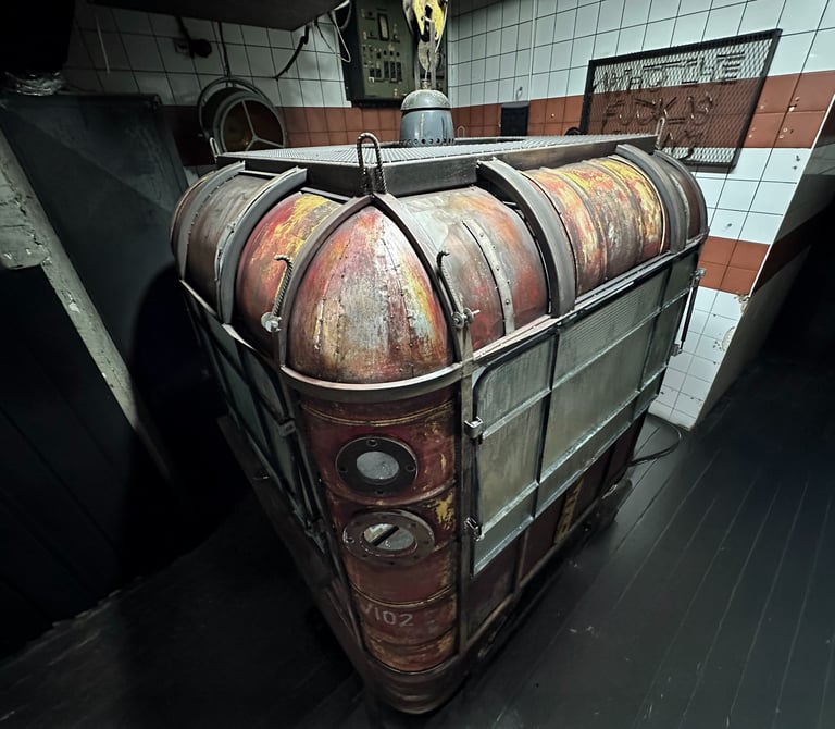The design speaks a post-apocalyptic, steampunk dialect. Industrial, raw, and alive.